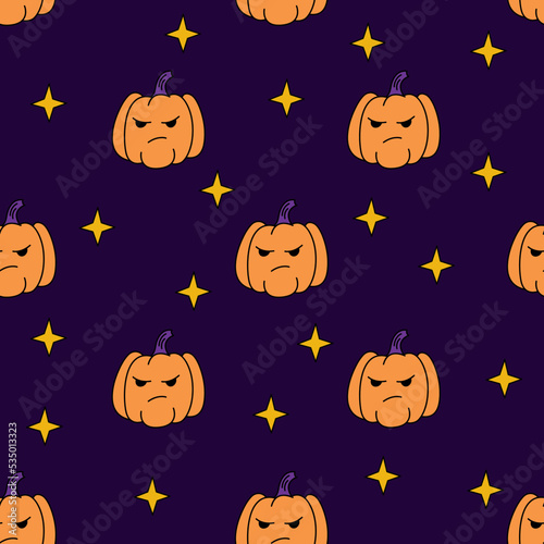 Fototapeta premium Halloween pumpkin retro seamless pattern. Psychedelic halloween seamless...