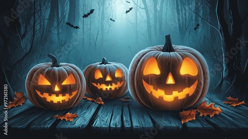 © Diffin, Fototapeta premium Halloween pumpkin scary jack o lantern holiday background