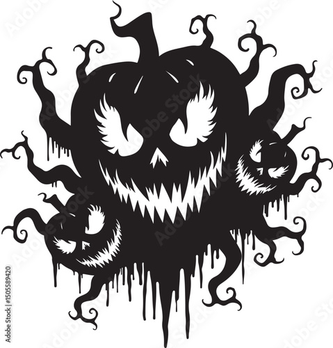 Fototapeta premium Halloween pumpkin vector black silhouette design.