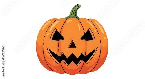 © Jerry, Fototapeta premium Halloween Pumpkin with Carved Face Bright Orange Color in Festive Style