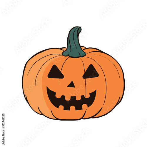 Fototapeta premium Halloween pumpkin with happy face on dark background. Vector cartoon...