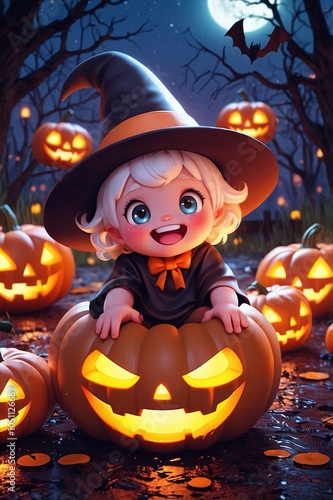 © Anucha, Fototapeta premium halloween pumpkin with hat
