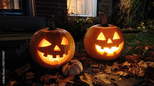 © AkuAku, Obraz premium Halloween pumpkins at night