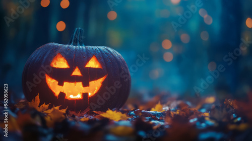 © MEMO AI, Fototapeta premium Halloween pumpkins decorations and party supplies with lanterns, candles for a memorable celebration.Halloween is celebrated on October 31st with costumes, trick-or-treating, and spooky decorations