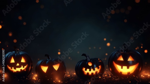 Fototapeta premium Halloween pumpkins glowing on spooky night background