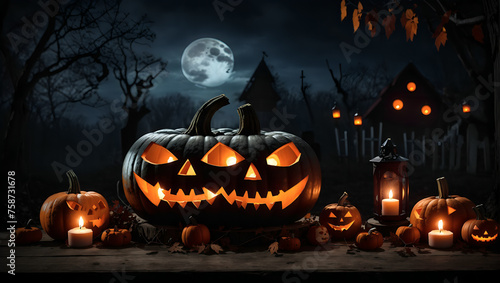 Fototapeta premium Halloween pumpkins smile and scary eyes for party night.