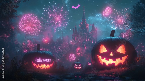 © PrismCraft, Fototapeta premium "Halloween" rendered in a bold, neon-inspired design that glows .