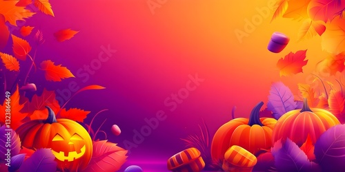 © Jessy Art, Fototapeta premium Halloween sale banner with sweets, pumpkins and autumn leaves, vibrant colors, clearly defined areas, ideal for websites.