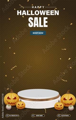 Fototapeta premium halloween sale discount portait template banner with blank space 3d podium for social media post product sale with abstract gradient brown background design 15