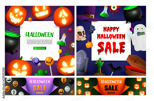 Obraz premium Halloween sale violet, blue banner set with pumpkins
