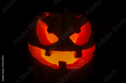 Fototapeta premium Halloween scary face pumpkin on black background