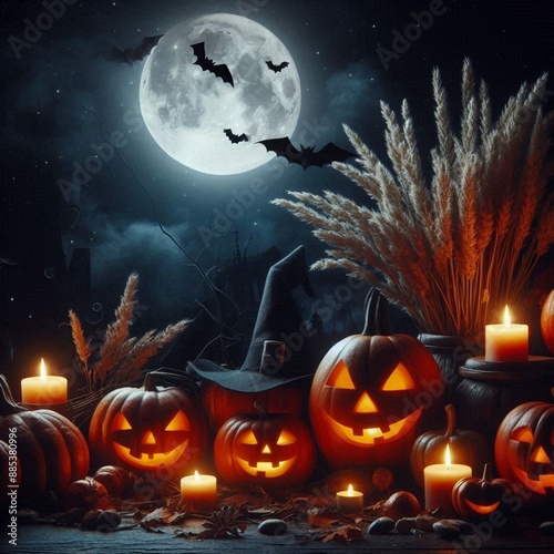 © kadi, Naklejka premium halloween scene theme in the night and low light