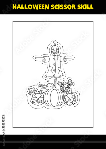 Fototapeta premium Halloween scissor skill for kids. Halloween scissor skill coloring page for...