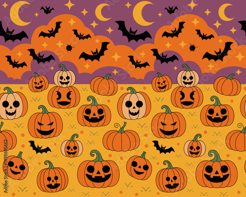 Fototapeta premium halloween seamless pattern, halloween, pumpkin, vector, autumn, pattern, illustration, seamless, orange, set, holiday, icon, october, celebration, design, cartoon, horror, spooky, fun, face, art, seas