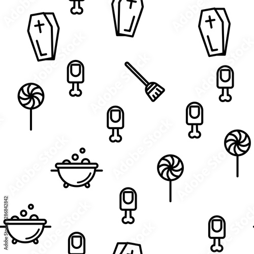 © vectorwin, Fototapeta premium Halloween Seamless Pattern Vector Thin Line Contour Illustrations
