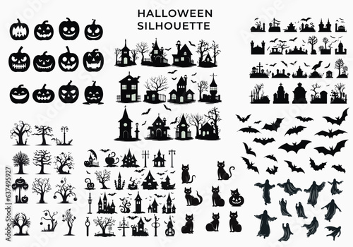 Naklejka premium Halloween silhouette Image. halloween silhouette Art .witch house,pumpkin,cat...