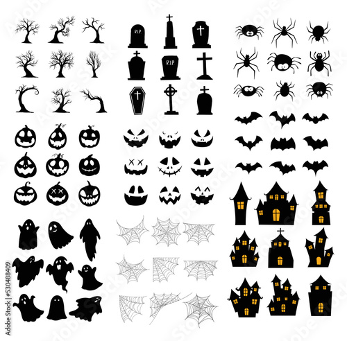 Naklejka premium Halloween silhouette set. Collection of halloween icon and element isolated on white background.