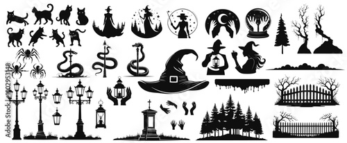 Fototapeta premium Halloween Silhouette Vector Pack illustrations. Spooky drawings, vector tombs...