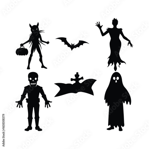 Fototapeta premium Halloween silhouettes of spooky characters and symbols