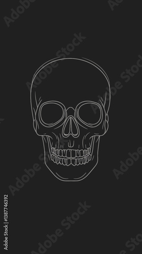 Fototapeta premium Halloween Skull Linear Vector Art Black Background Spooky Design