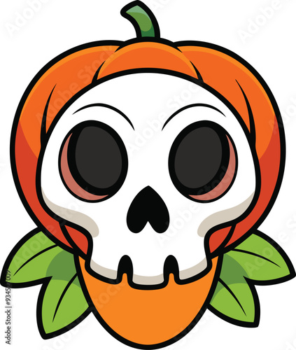 © SHISHIR CHANDRA, Fototapeta premium Halloween skull with pumpkin.