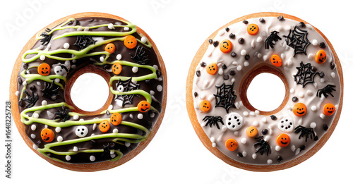 Fototapeta premium Halloween Spooky Decorative Donuts Bread on Transparent Background