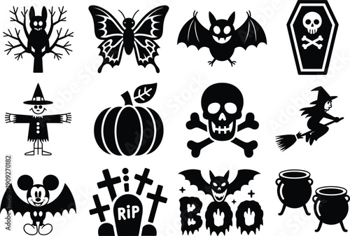 Obraz premium Halloween, spooky, icon, set, vector, illustration, black, silhouette, symbols, isolated, on, white, background