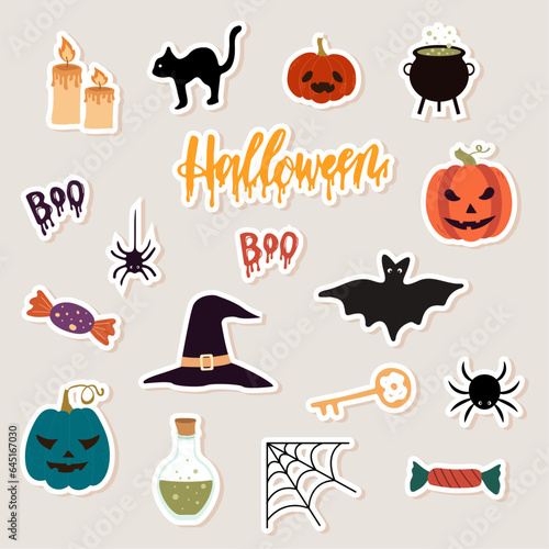 © Khamidova, Naklejka premium halloween stickers vector elements set