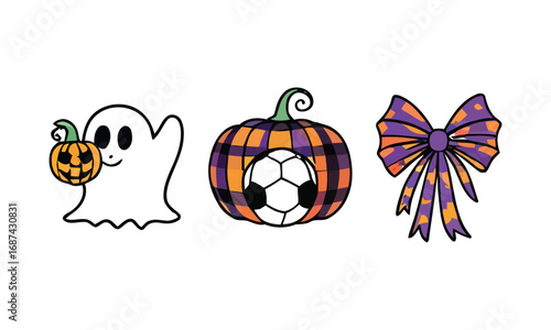 Obraz premium Halloween sublimation mega bundle with 3 cute witch, ghost, pumpkin, and bow design elements in vector