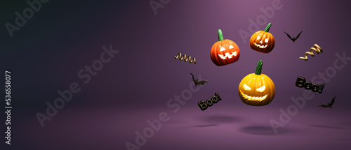 Fototapeta premium Halloween theme with pumpkin ghosts and bats - 3D