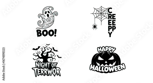 Fototapeta premium Halloween-themed vector graphics, black spooky icons on a dark background