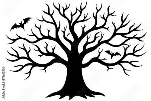 Fototapeta premium Halloween tree silhouette vector, Silhouette of a dead tree vector illustration