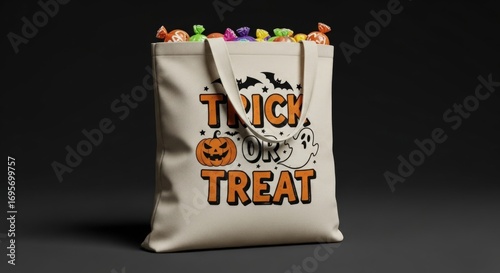 Obraz premium Halloween trick-or-treat bag filled with colorful candy, symbolizing festive...
