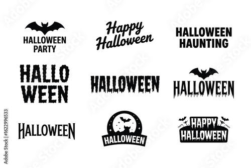 Fototapeta premium Halloween Typography Vector Set with Bats, Party, Haunting, and Happy...