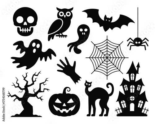 Fototapeta premium Halloween vector graphics collection spooky icons for festive design and decoration silhouette vector illustration white background