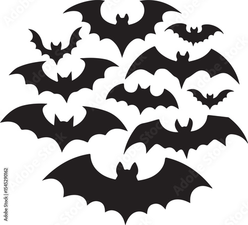 © HAFIJA KHATUN, Fototapeta premium Halloween vector icon set with bats moon and spooky night elements