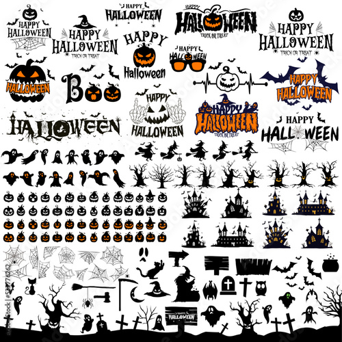 Fototapeta premium Halloween vector set. Pumpkin icon set. Ghost, spooky vector set.