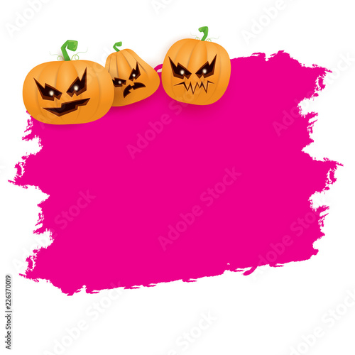 Fototapeta premium Halloween web pink grunge Banner or poster with Halloween scary pumpkins isolated on white background . Funky kids Halloween banner with space for greeting text or sale