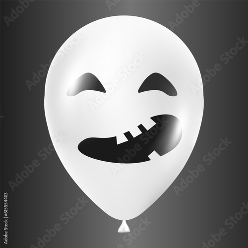 Fototapeta premium Halloween white balloon illustration with scary and funny face isolated on dark background