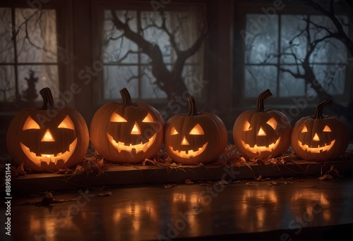 Obraz premium Halloween witch, skull and pumpkin, dark theme