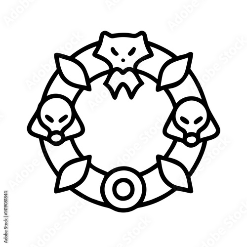 © IsratJahan, Obraz premium Halloween wreath svg vector graphic design with fox and alien elements for diy projects crafts