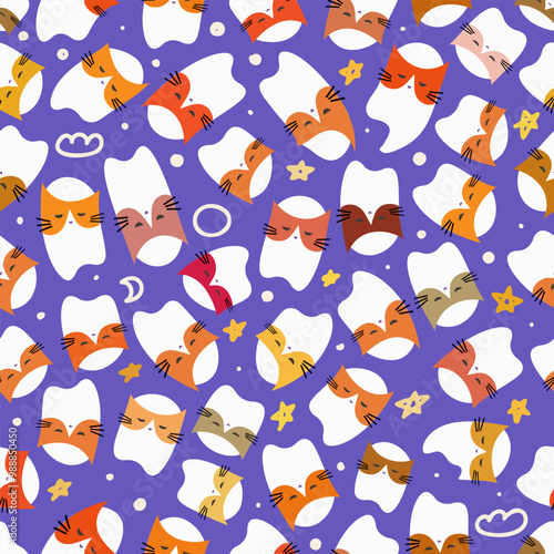 Fototapeta premium Halloweens vector seamless pattern with boo cat