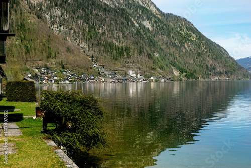 Fototapeta premium Hallstatt Austria. Alpine Village Nestled By Mountain Lake