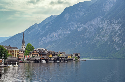 © goce risteski, Naklejka premium Hallstatt village in the Austrian Alps landscape