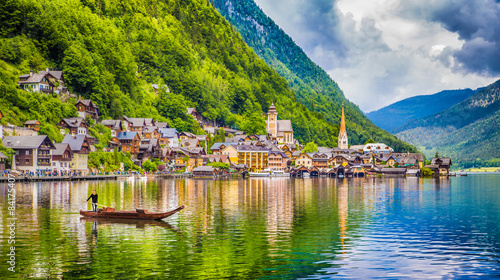 © JFL Photography, Fototapeta premium Hallstatt with traditional Plätte boat, Salzkammergut, Austria