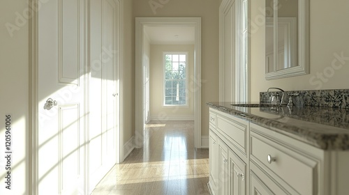 Fototapeta premium Hallway bathroom vanity, sunny window view, home interior