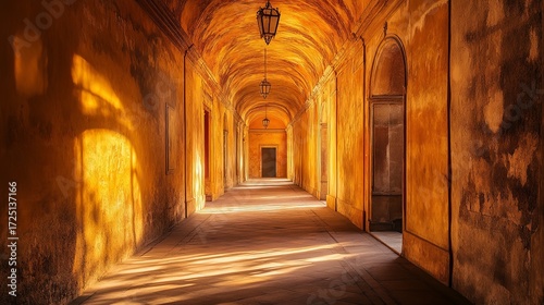 Fototapeta premium hallway stretching endlessly with surreal light .