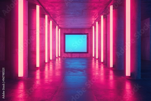 © MK, Fototapeta premium Hallway with Red and Blue Lights