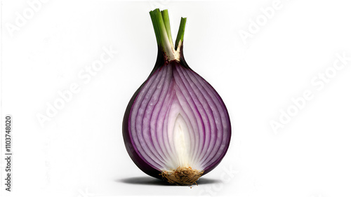 © Stockfish, Fototapeta premium Halved red onion with visible layers and green stalk transparent background