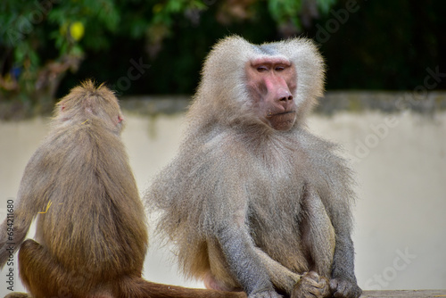 © Karen Yomalli, Naklejka premium Hamadryas baboon (Papio hamadryas) removing lice. Cercopithecidae.